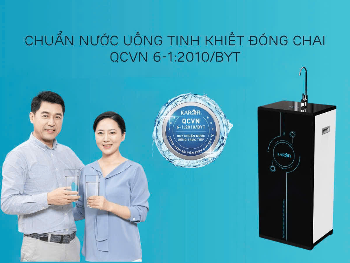 Công nghệ lọc nước Karofi mang đến chuẩn mực mới cho nước uống gia đình Việt – không chỉ sạch mà còn tinh khiết, đạt chuẩn quốc gia QCVN 6-1:2010/BYT.